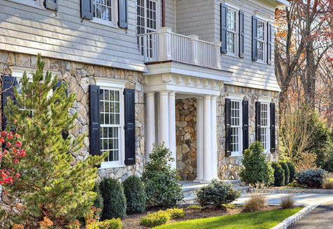 Set on acres of rolling lawns, this stunning American Stone & Shingle home features the finest in architectural design and craftsmanship - 4 magnificently finished floors of warm and welcoming living spaces, complete with elevator and two separate 2-car garages with porte cochere. This residence generously accommodates both a casual lifestyle and grand scale entertaining. The large walk-out lower level offers additional and finished recreation space while outdoors, lush gardens and poolscape are simply magical!